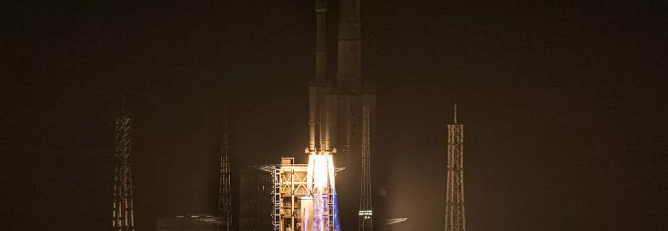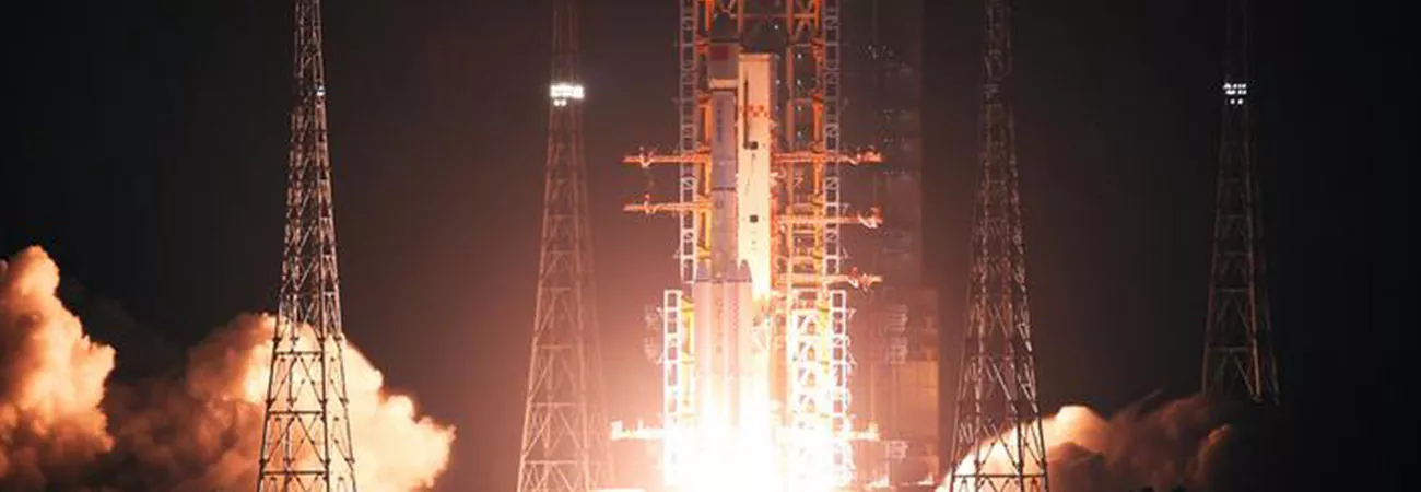 چین کے جنوبی صوبہ ہائی نان میں وین چھانگ اسپیس کرافٹ لانچ سائٹ سے ترمیم شدہ لانگ مارچ ۔ 7 کیریئر راکٹ کے ذریعے ایک نئے سیٹلائٹ ژونگ شینگ - 1 ای کو خلا میں بھیجا جا رہا ہے۔(شِنہوا)
