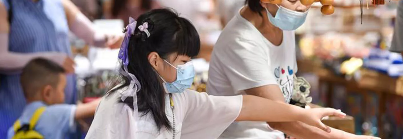 چین کے دارالحکومت بیجنگ میں موسم خزاں کے تہوارکی تعطیل کے دوران لوگ ایک میلے میں خریداری کر رہے ہیں۔ (شِنہوا)