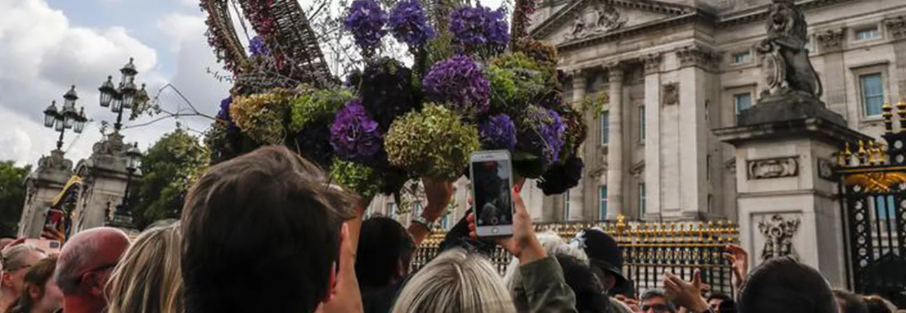 برطانیہ کے لندن میں پھولوں سے بنے ایک دیوقامت تاج کے ساتھ ملکہ الزبتھ دوم کو خراج تحسین پیش کیا جا رہا ہے۔(شِنہوا)