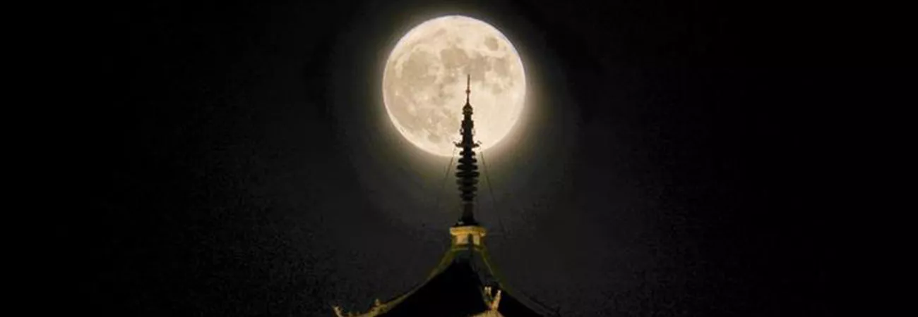 چین میں وسط خزاں تہور کی شب چمکتے مکمل چاند...