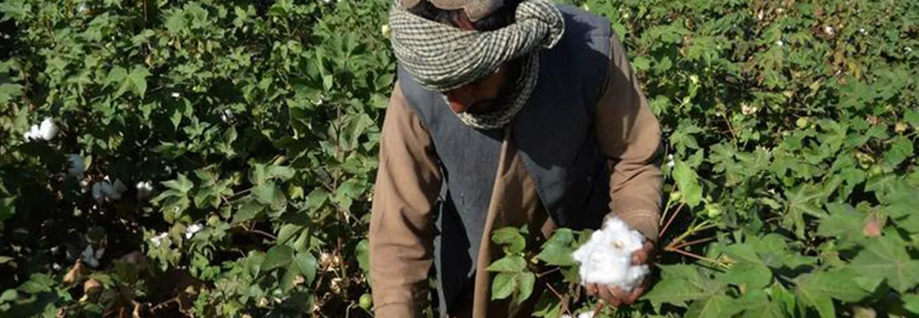 افغا نستان،صوبہ قند ھار میں افغان کسان کاٹن چُن رہا ہے۔(شِنہوا)