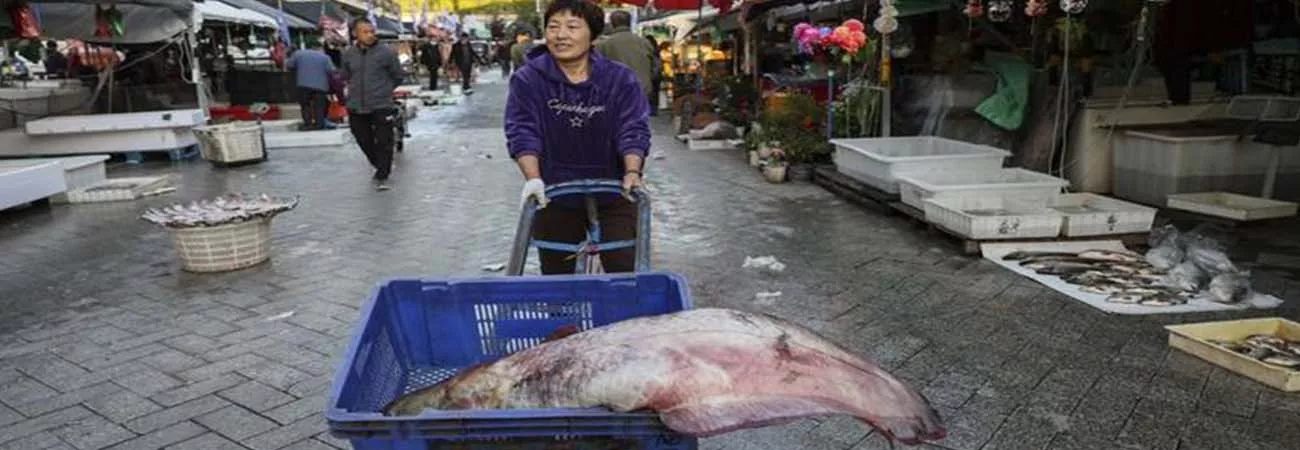 چین کے انتہائی مشرقی شہر میں مچھلی کی تجارت...