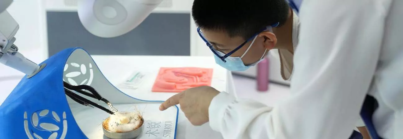 چین کے دارالحکومت بیجنگ کے شوگوانگ پارک میں منعقدہ 2022 چا ئنہ بین الاقوامی میلہ برائے تجارتی خدمات  میں لوگ روبوٹ کو سرجری کرتے ہوئے دیکھ رہے ہیں۔ (شِنہوا)