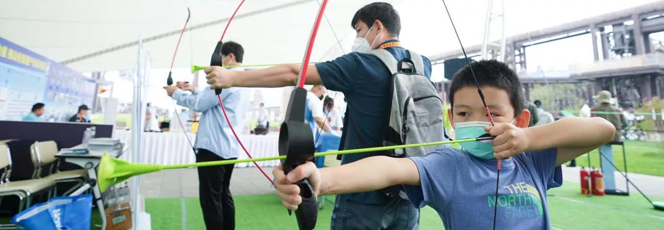 چین کے دارالحکومت بیجنگ کے شوگوانگ پارک میں منعقدہ 2022 چائنہ بین الاقوامی میلہ برائے تجارتی خدمات  میں لوگ تیراندازی کررہے ہیں۔ (شِنہوا)