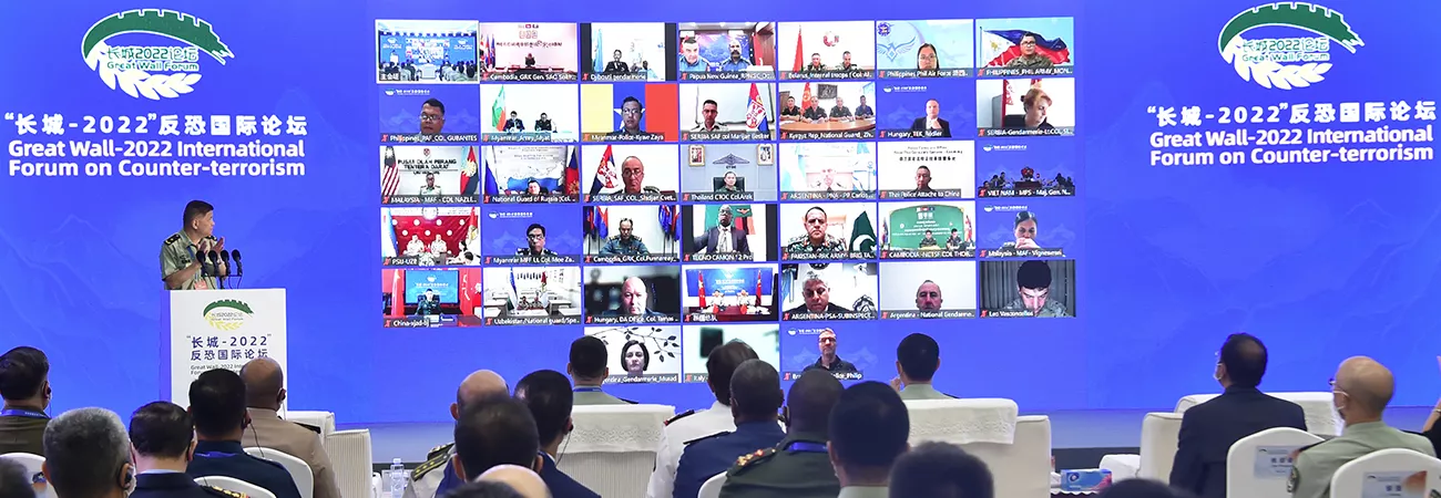بیجنگ (شِنہوا) چینی عوامی مسلح پولیس فورس نے انسداد دہشت گردی بارے  دی گریٹ وال بین الاقوامی فورم 2022  کا انعقاد کیا ۔ فورم 30 اور 31 اگست کو آن لائن اور آف لائن دونوں طرح سے منعقد ہوا۔