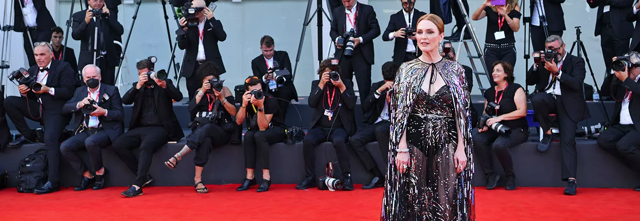 اٹلی کے شہر وینس میں ہونے والے 79 ویں وینس بین الاقوامی فلم میلے کے اہم مقابلے کی بین الاقوامی جیوری کی صدر اور امریکی اداکارہ جولیانے مورے کا سرخ کارپٹ پر ایک انداز۔ (شِنہوا)