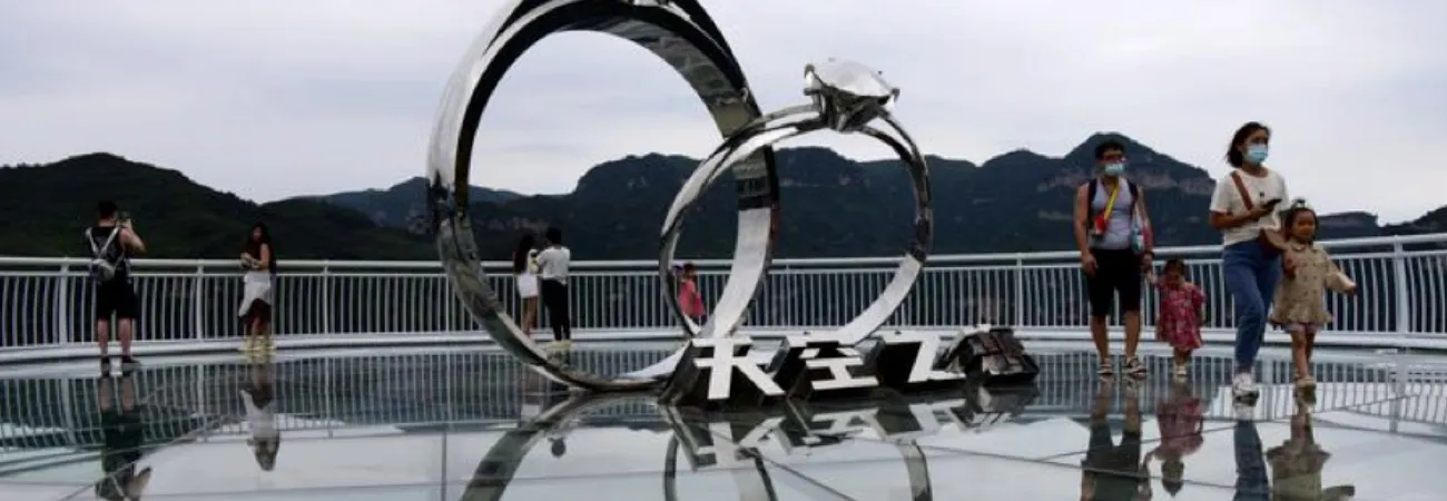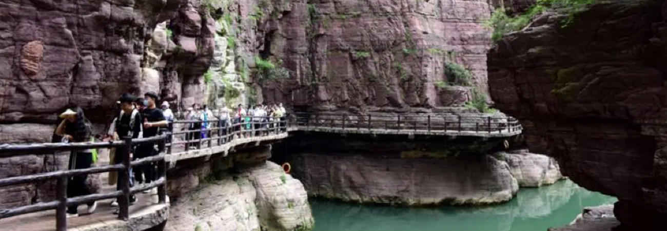 چین کے وسطی صوبہ ہینان میں سیاح یون تائی پہاڑ کے دلکش مقام کا دورہ