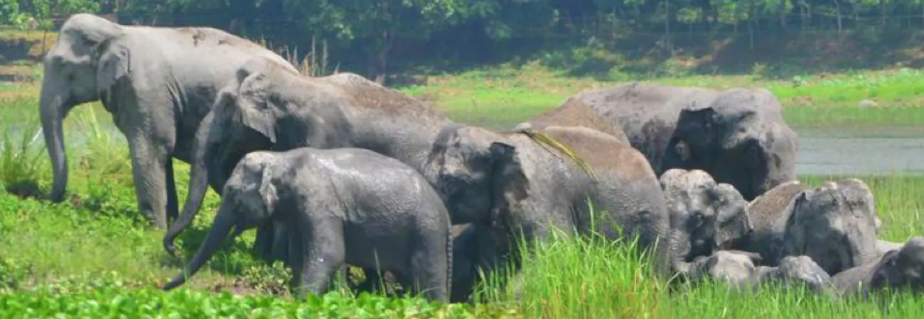 گوہاٹی (شِنہوا) بھارت کی شمال مشرقی ریاست آسام کے ایک ویٹ لینڈ میں جنگلات سے آنے والا ایشیائی جنگلی ہاتھیوں کا غول خوراک کی تلاش میں مصروف ہے۔