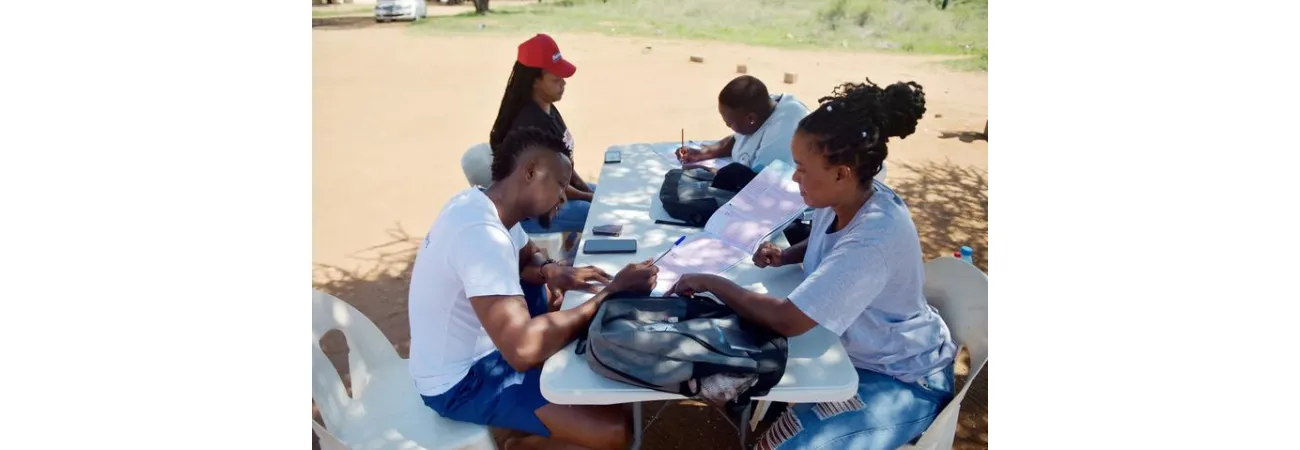 بوٹسواناکے ضلع کوی نینگ کے گاوں موپنے کے ایک پولنگ اسٹیشن پر لوگوں کا بطور رائے دہندگان اندراج کیا جارہا ہے۔ (شِنہوا)