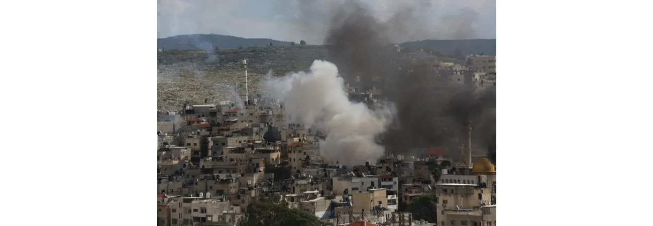 شمالی مغربی کنارے کے شہر تلکرم میں پناہ گزین کیمپ میں جھڑپوں کے دوران دھواں اٹھ رہا ہے۔(شِنہوا)