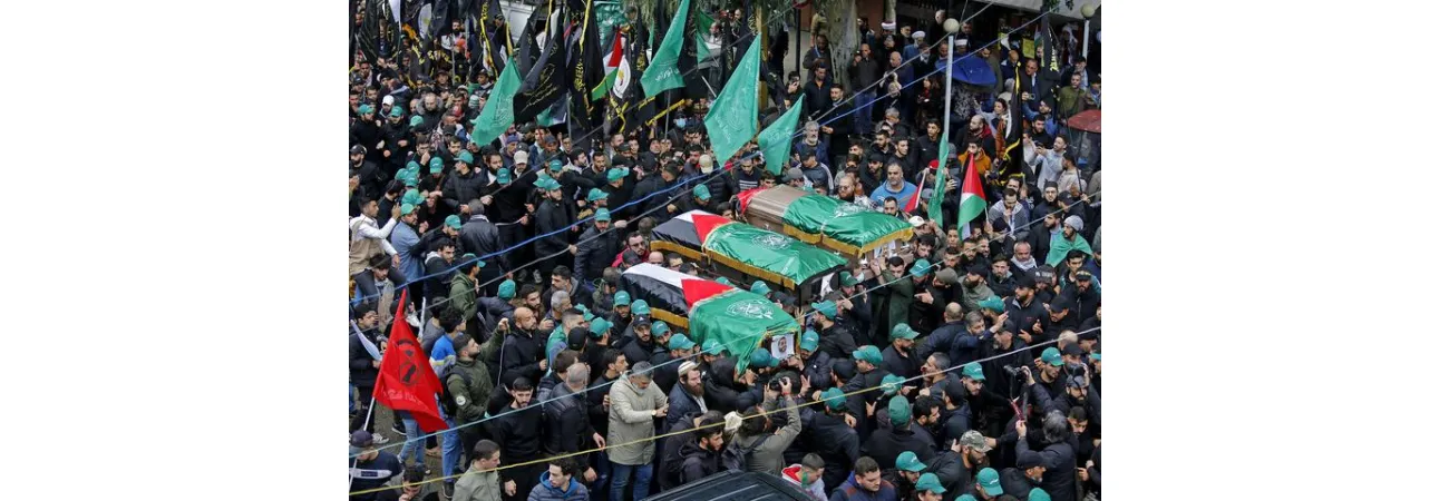 لبنان کے شہر بیروت میں حماس کے نائب سربراہ صالح العروری اور حماس کے دیگر دو عہدیداروں کی نماز جنازہ میں لوگوں کی بڑی تعداد شریک ہے۔(شِنہوا)