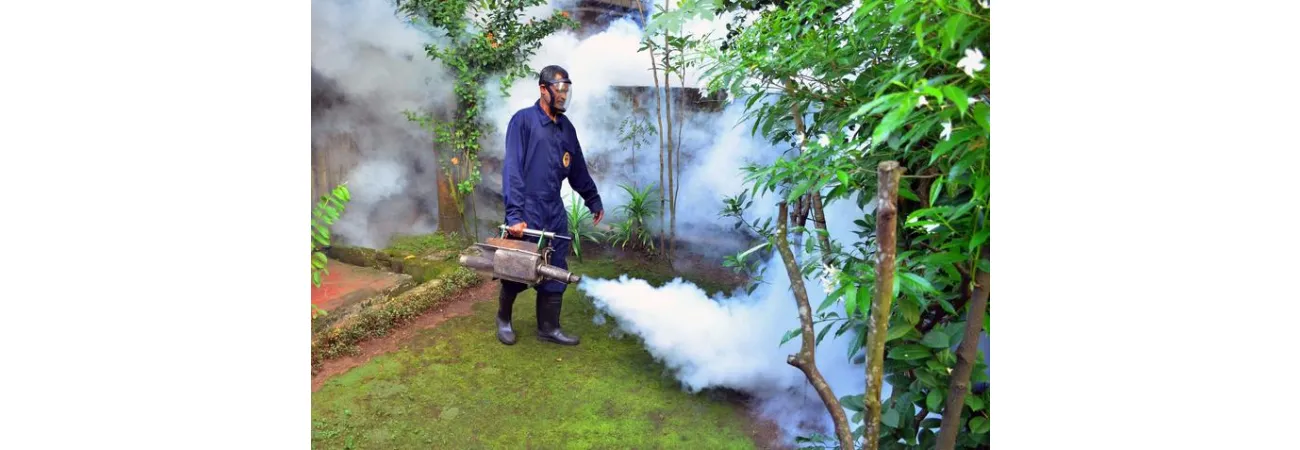 سری لنکا کے دارالحکومت کولمبوکے ایک رہائشی علاقے میں  مچھروں کی افزائش کو روکنے کے لیے کیڑے مار دوا کا اسپرے کیا جا رہا ہے۔(شِنہوا)