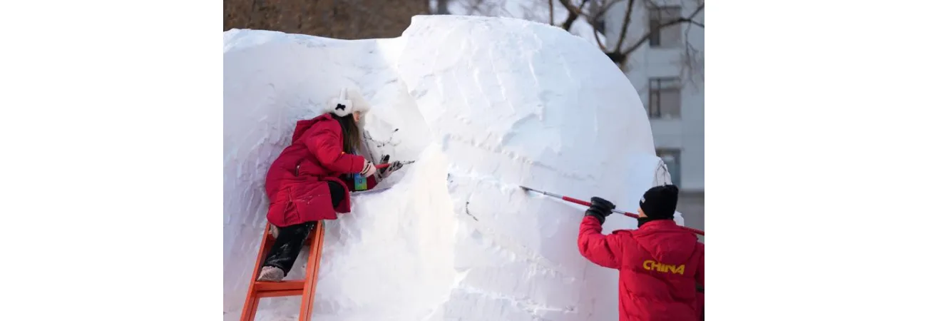 چین کے شمال مشرقی صوبے حئی لونگ جیانگ میں ہاربن انجینئرنگ یونیورسٹی میں  طلباء برف سے مجسمہ سازی کے 16ویں بین الاقوامی  مقابلے میں شریک ہیں۔(شِنہوا)