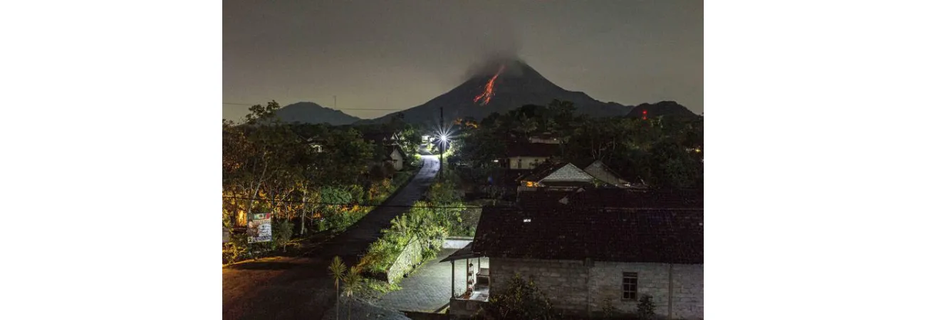 انڈونیشیا۔ یوگاکارتا ۔ میراپی پہاڑ۔ لاوا اگل...
